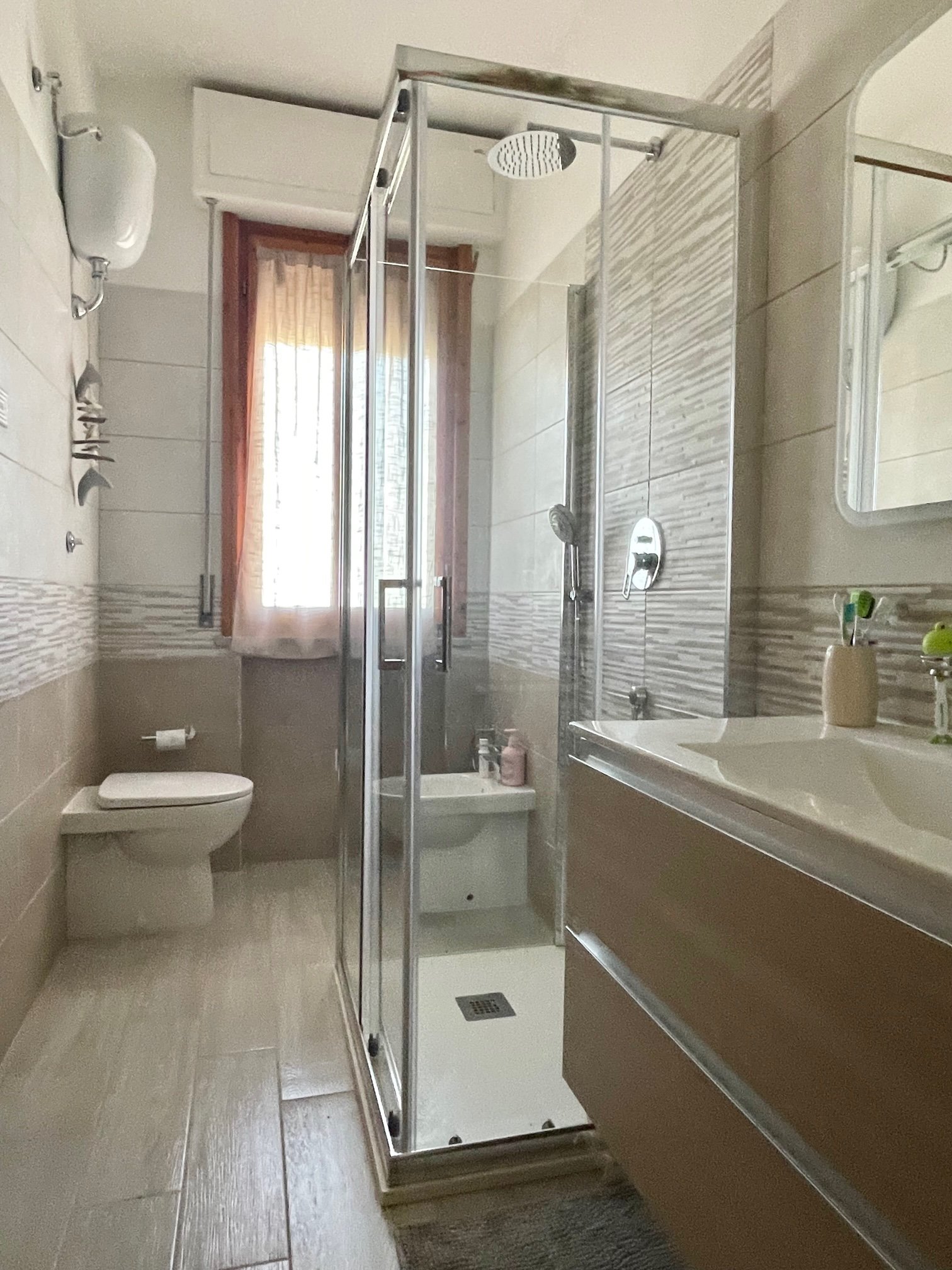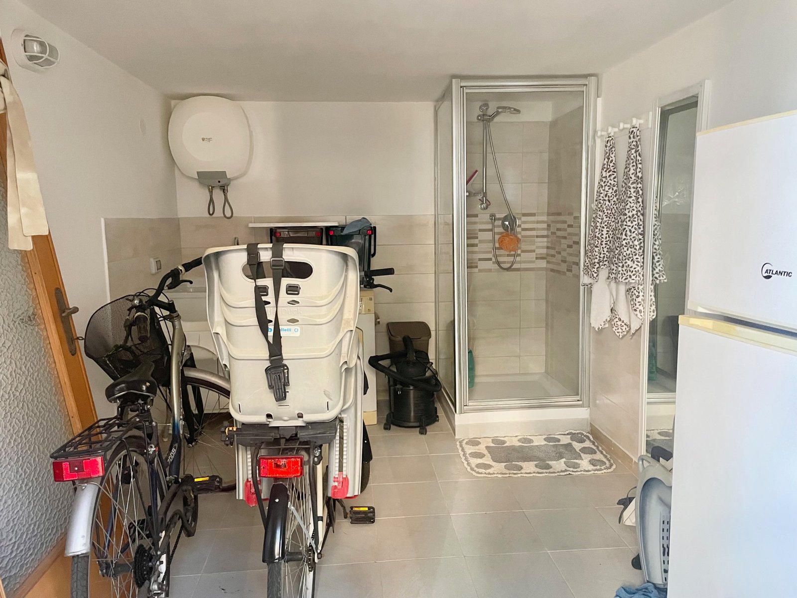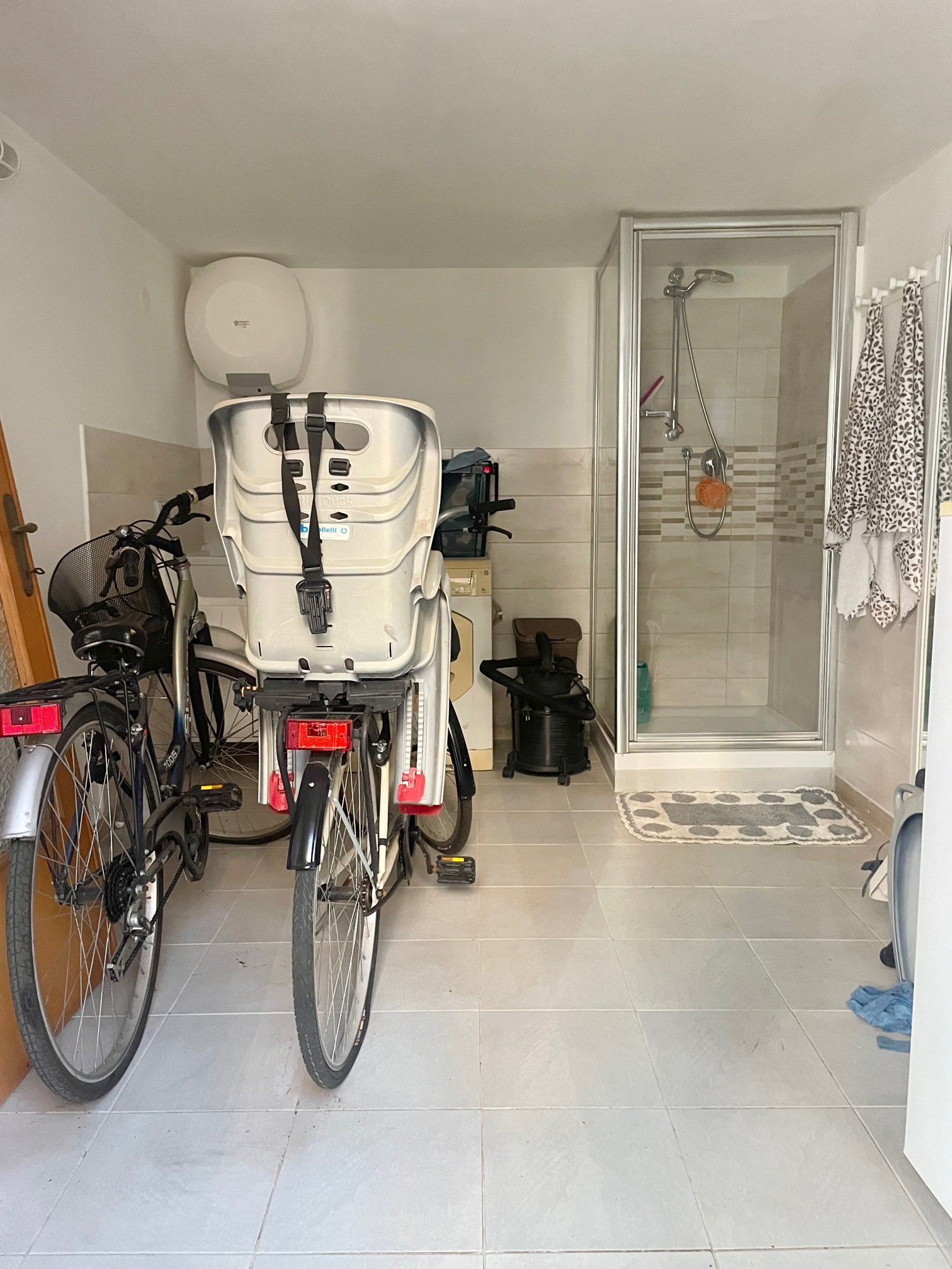 A piano terra un locale rimessa con facile accesso per bici o moto e comoda doccia, possibilità di parcheggio di un automobile all’interno del cortile condominiale.