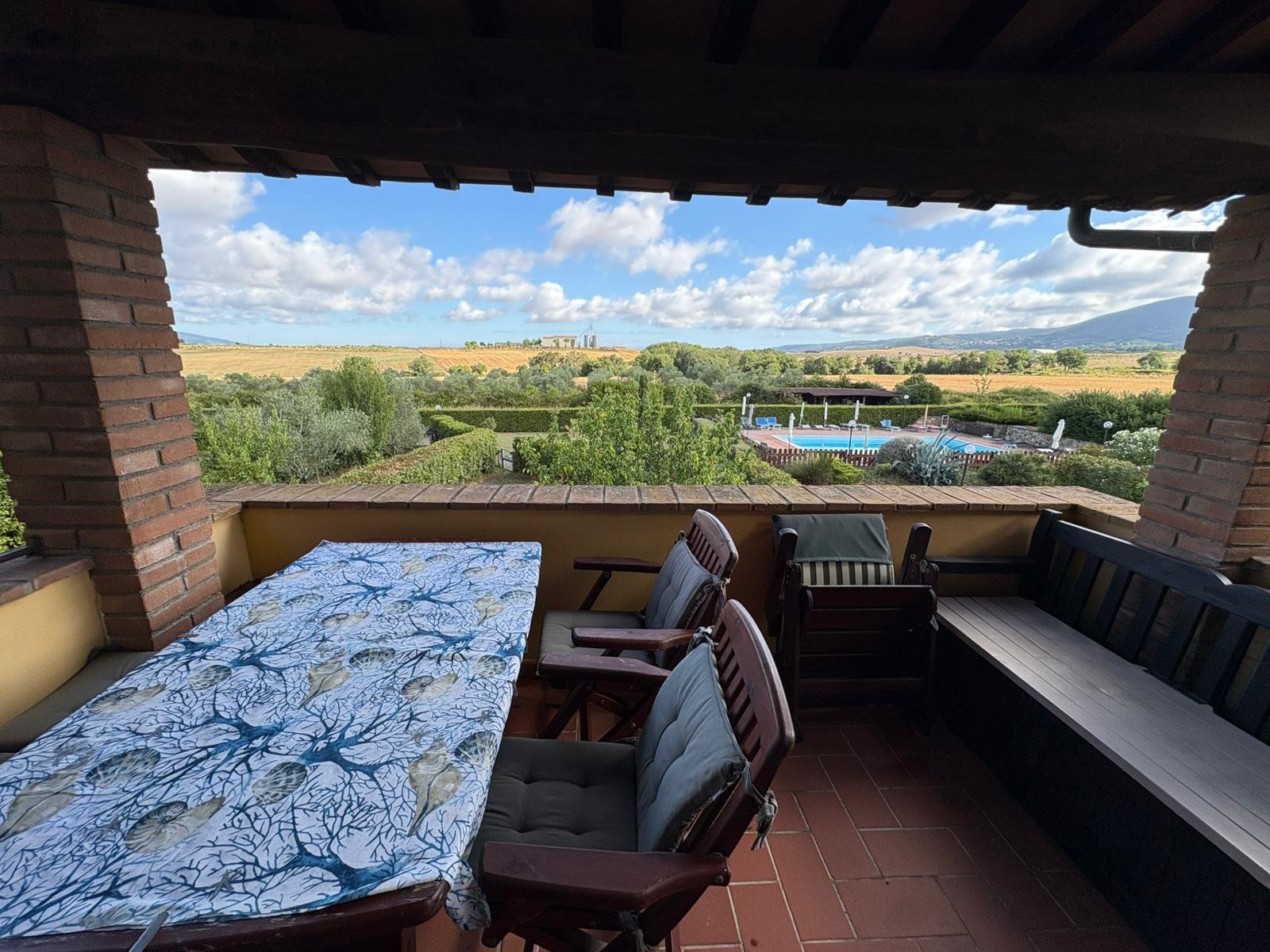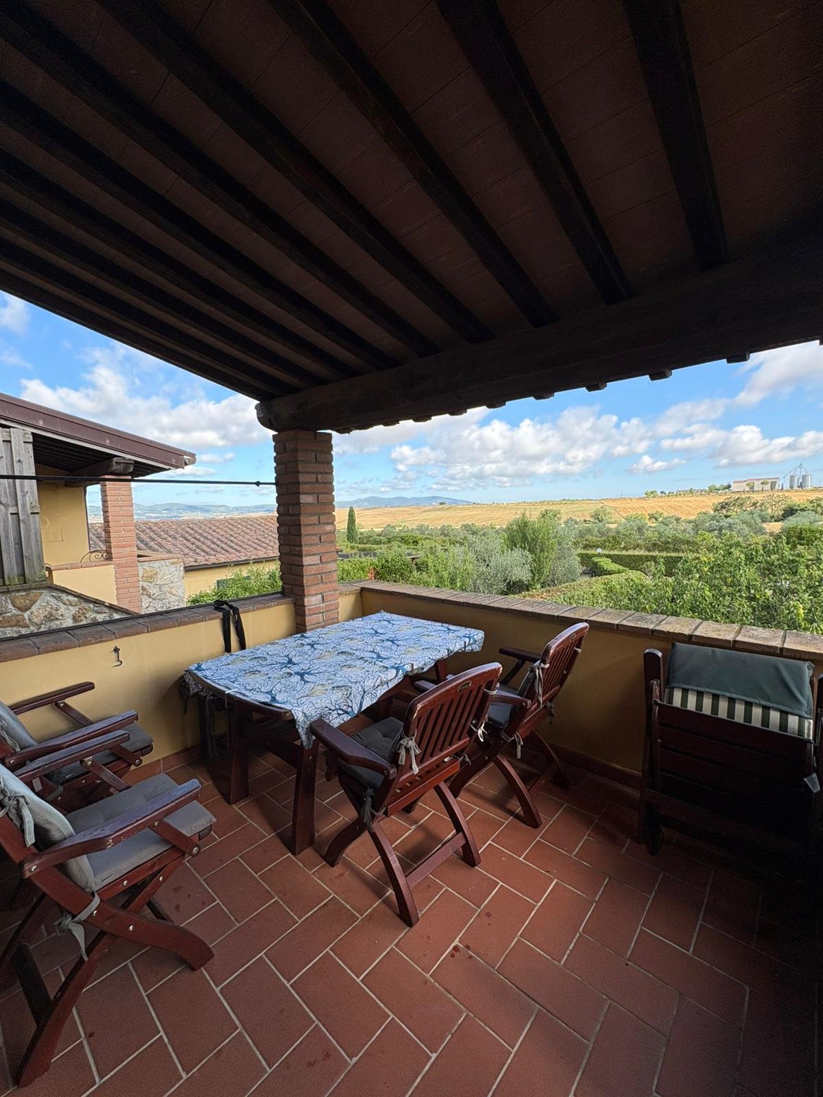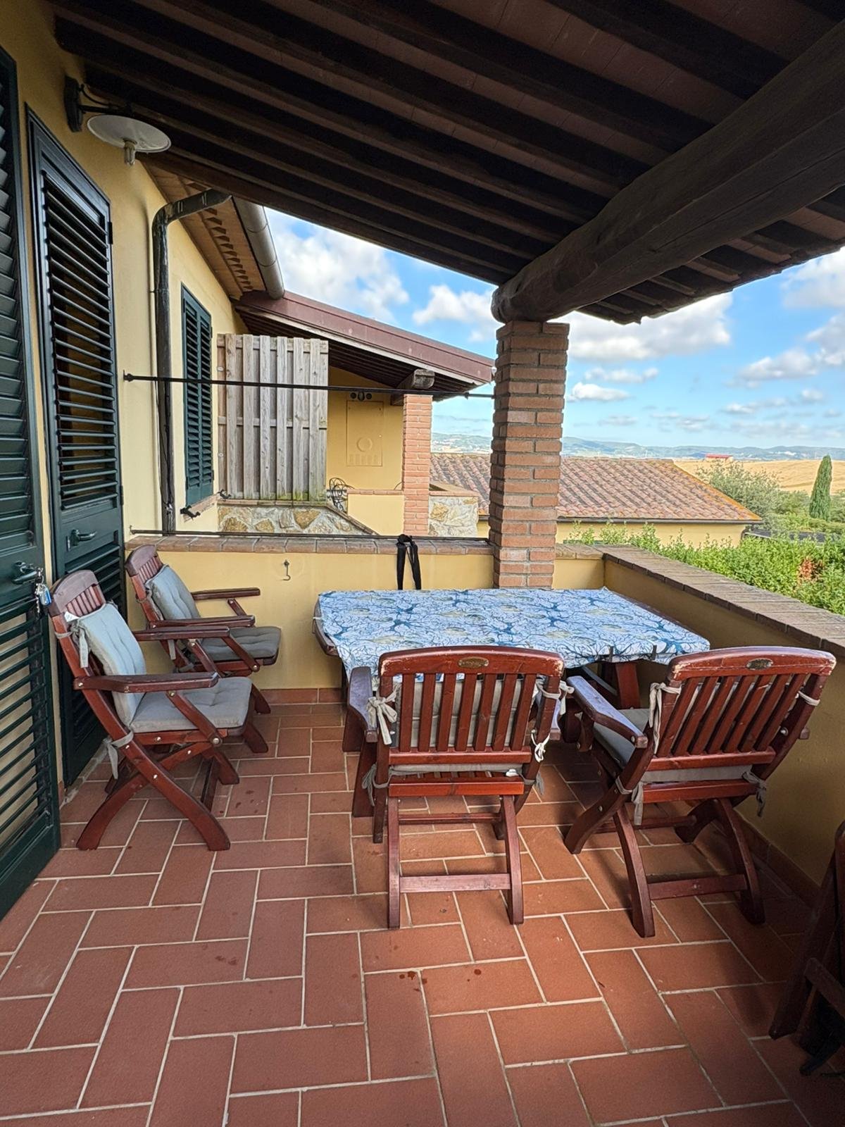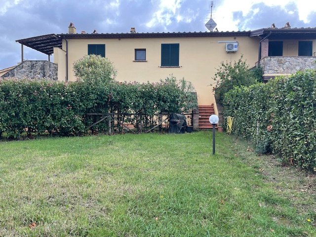 Nella splendida campagna di POMAIA, in contesto residenziale esclusivo frutto della ristrutturazione di un ampio casolare situato a pochi minuti di auto dal paese famoso in tutto il mondo per il suo tempio buddista, proponiamo in vendita un ampio bilocale con giardino e ingresso indipendente L’appartamento fa parte di un complesso con ampia corte condominiale interamente recintata e dotato di piscina condominiale, la casa si presenta perfettamente mantenuta con splendido soffitto a travi in tipico stile toscano ed è composta al suo interno da cucina-soggiorno, bagno con box doccia, camera matrimoniale, esclusiva terrazza abitabile con splendida vista sulle colline e ampia porzione di giardino privato. L’immobile è dotato di impianto di riscaldamento autonomo a gas GPL, climatizzatore caldo-freddo, due posti auto esclusivi. Completa la proprietà un piccolo appezzamento di terra – con alcune piante di ulivo – adiacente il complesso immobiliare.