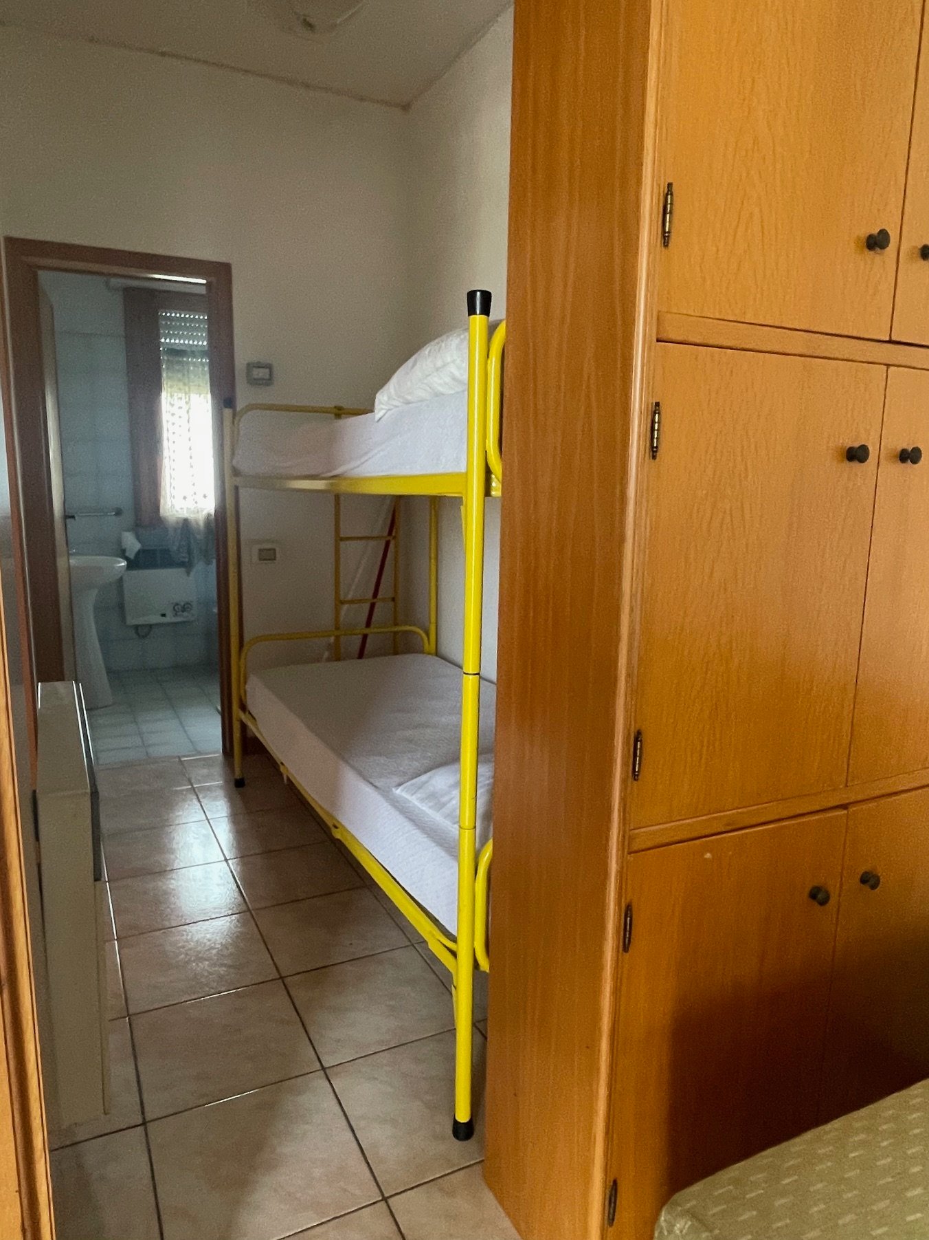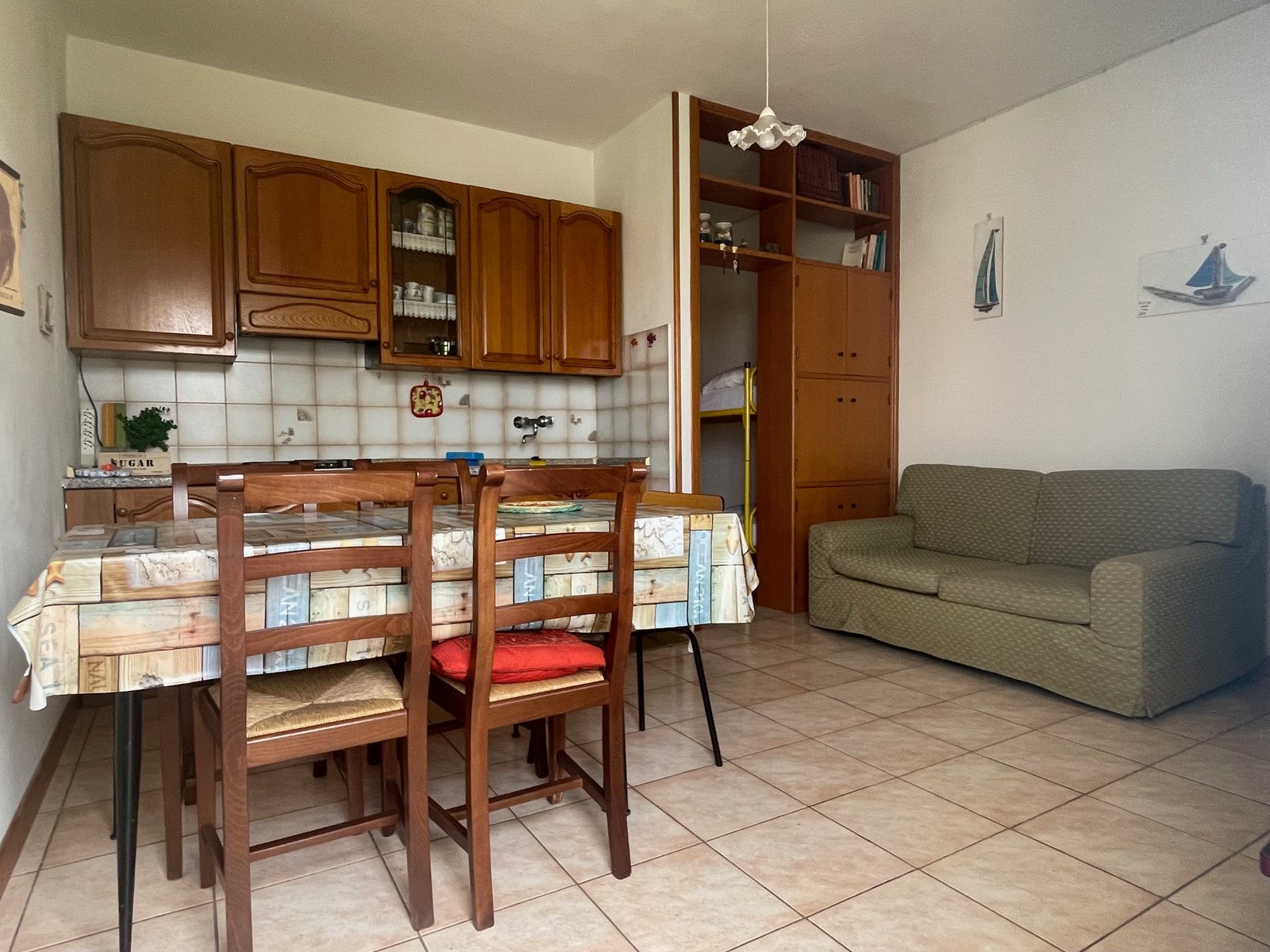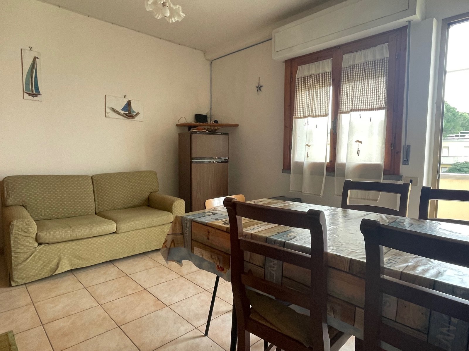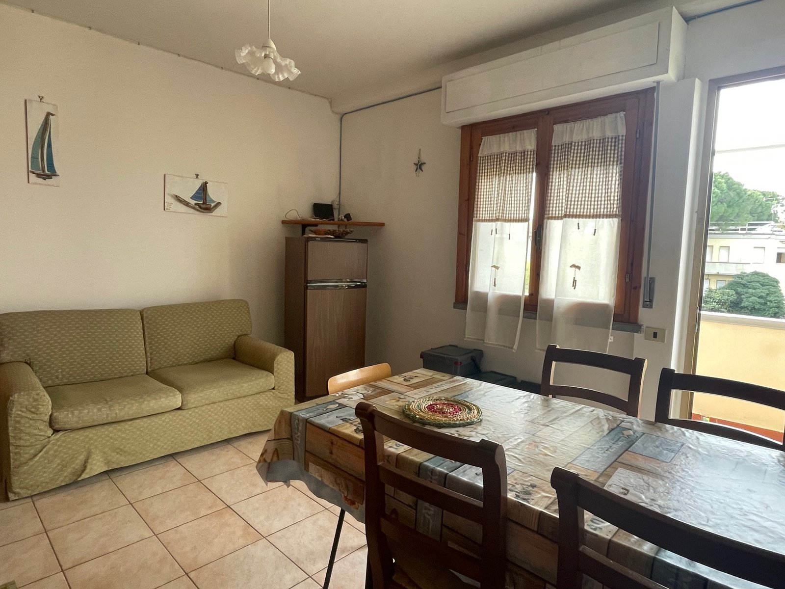 Vada, a soli 250 m dal mare in zona punto azzurro affittasi grazioso bilocale con ingresso da scala privata, al piano primo ed ultimo della palazzina composto da balconcino di ingresso lato mare con affaccio sul verde, cucina-soggiorno, disimpegno con letto a castello, camera con letto matrimoniale e balcone, bagno finestrato con doccia con tenda. Cat energetica “G” ep 187,95
