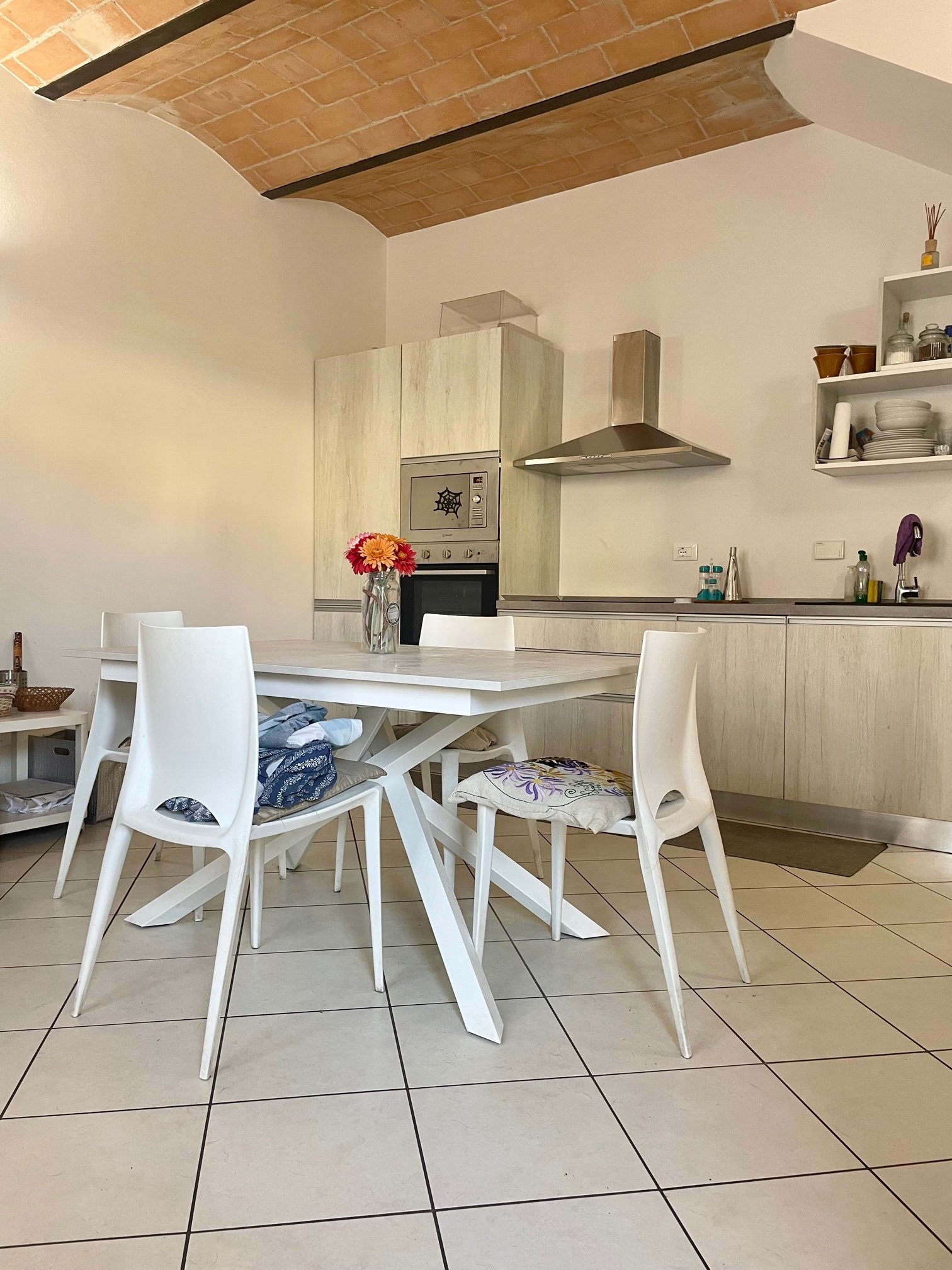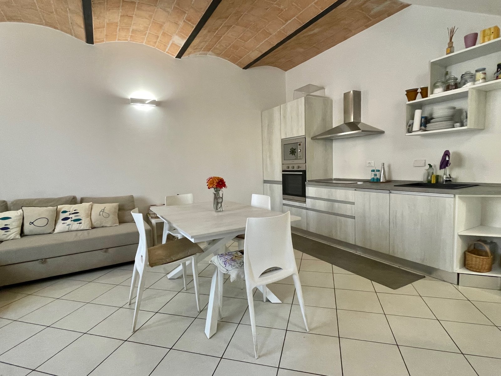 Vada, in contesto esclusivo riservato e signorile recentemente costruito siamo lieti di proporvi in vendita uno splendido appartamento terratetto con giardino privato e posto auto esclusivo. Alla proprietà si accede tramite cancello automatico che ci conduce nell’ampio cortile condominiale dove è situato il posto auto esclusivo, tramite vialetto si giunge al cancellino che ci introduce nel giardino privato situato a corpo della cucina e quindi ideale per essere attrezzato per mangiare all’aperto. Tramite portone blindato siamo accolti nel soggiorno con angolo cottura recentemente arredato e dotato di piano a induzione, a fianco della cucina un comodo sottoscala ospita la lavatrice, addolcitore e scaldabagno. al piano superiore tramite comoda scala in muratura si raggiunge il reparto notte che si compone di disimpegno, 2 camere matrimoniali, bagno con box doccia. La casa presenta finiture particolari con splendide soffitto a travi nel reparto notte e soffitto a  voltine nella zona giorno. Completa la proprietà una comoda cantina con facile accesso per bici o scooterLa casa è attualmente alimentata completamente ad elettricità, anche il riscaldamento prodotto mediante le pompe di calore caldo/freddo installate in tutte le stanze e il termo-arredo nel bagno. Gli infissi sono in legno e doppio vetro, ben mantenuti.